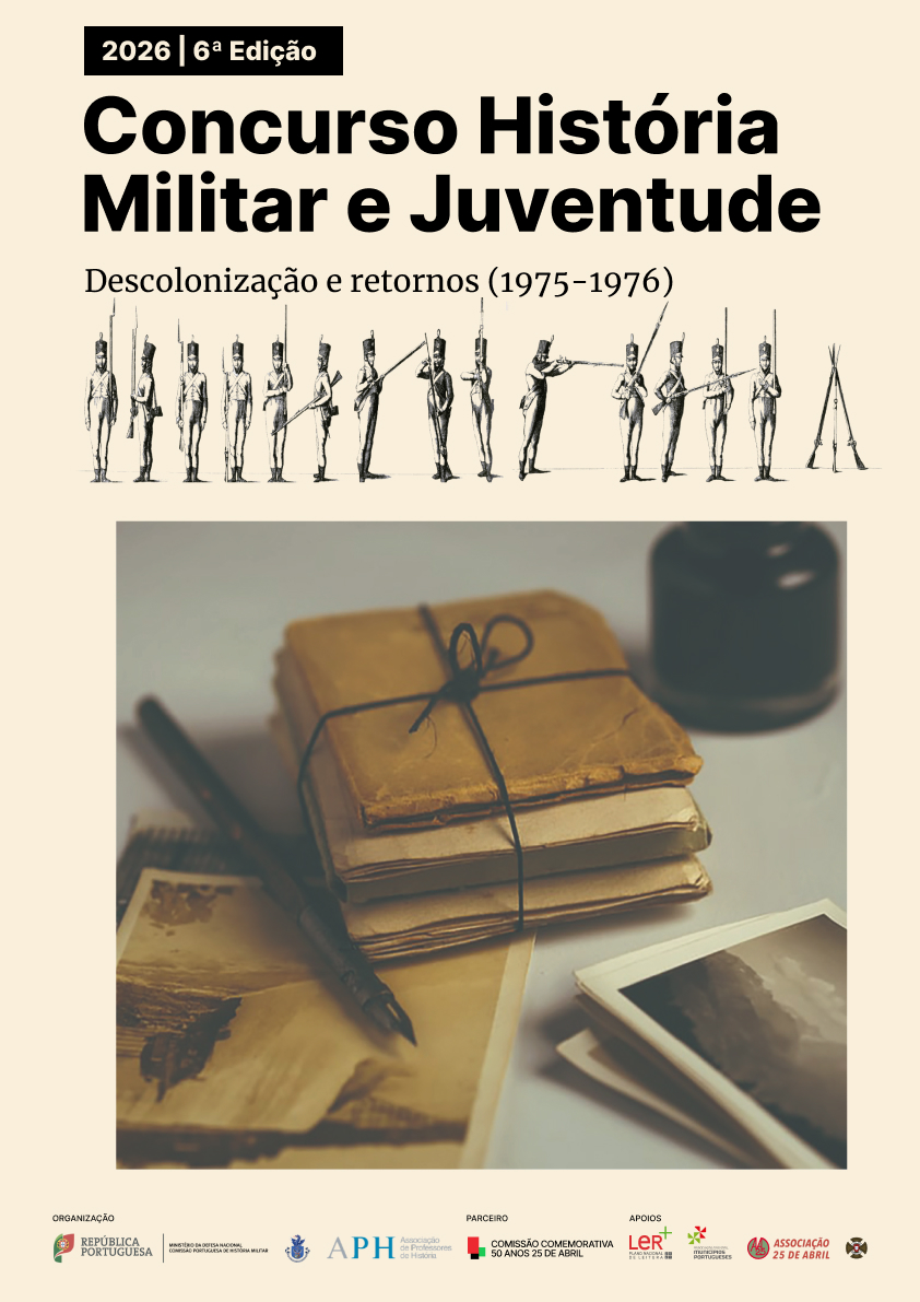 “História Militar e Juventude" é um concurso promovido pela Comissão Portuguesa de História Militar (CPHM) e pela Associação de Professores de História (APH). Mais uma vez, conta com a Comissão Comemorativa dos 50 anos do 25 de Abril como parceira e com o Plano Nacional de Leitura 2027, a Associação dos Municípios Portugueses, a Associação 25 de Abril e a Liga dos Combatentes como apoios.
