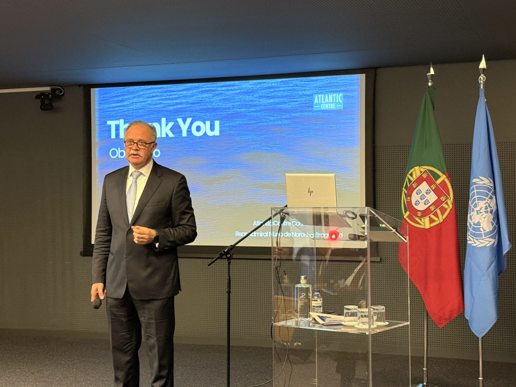 No dia 22 de outubro, o Centro do Atlântico – representado pelo seu Coordenador, Contra-Almirante Nuno de Noronha Bragança – teve a oportunidade de realizar uma apresentação institucional a uma delegação de Representantes Permanentes junto das Nações Unidas, no Instituto Universitário Militar (IUM).